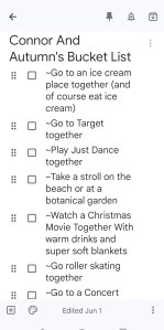 Google Keep bucket list