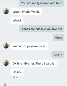 Ping! My phone went off with a private message from one of my friends, we’ll call her Trisha–the same friend who was already trying to pair me with another boy. The moment I saw her message, my heartbeat grew faster. She had sent a screenshot… A screenshot of a private message between Connor and her…