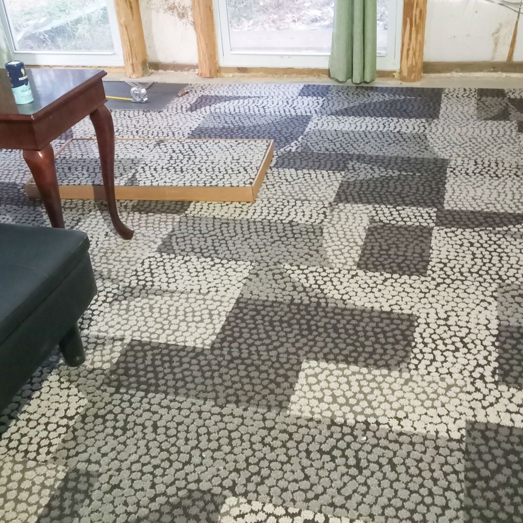 Our living room finally has carpet. I still chuckle at the photo of both couches in the kitchen. I cooked lunch kneeling on our ottoman that day.